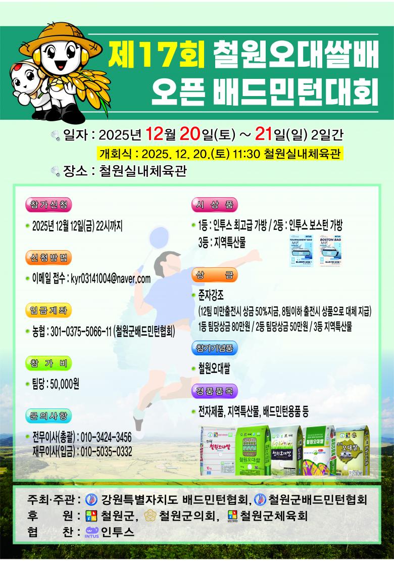 | 대회요강 | 제17회 철원 오대쌀배 오픈 배드민턴대회.pdf |